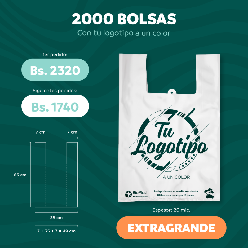 2000 BOLSAS EXTRAGRANDE CON TU LOGOTIPO A UN COLOR